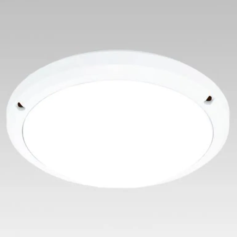 Seinävalaisin liiketunnistimella. LED-valoille, tarjoaa 1500 lumenia sekä valonsävyn 3000 K. Plafondissa on valkoinen kehys ja polykarbonaatista valmistettu opaalikupu.