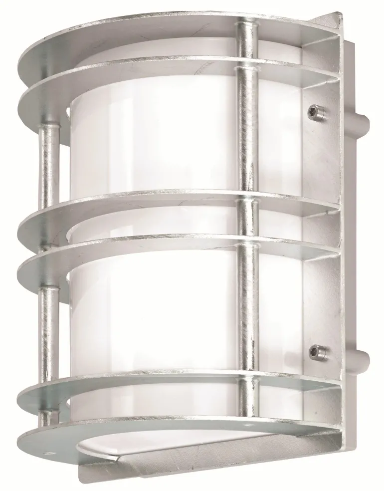 Seinävalaisin E27-kannalla, valmistettu teräksestä. Valaisin on IP54-luokiteltu.