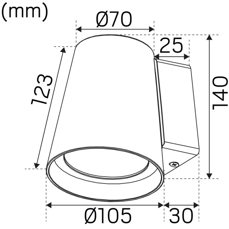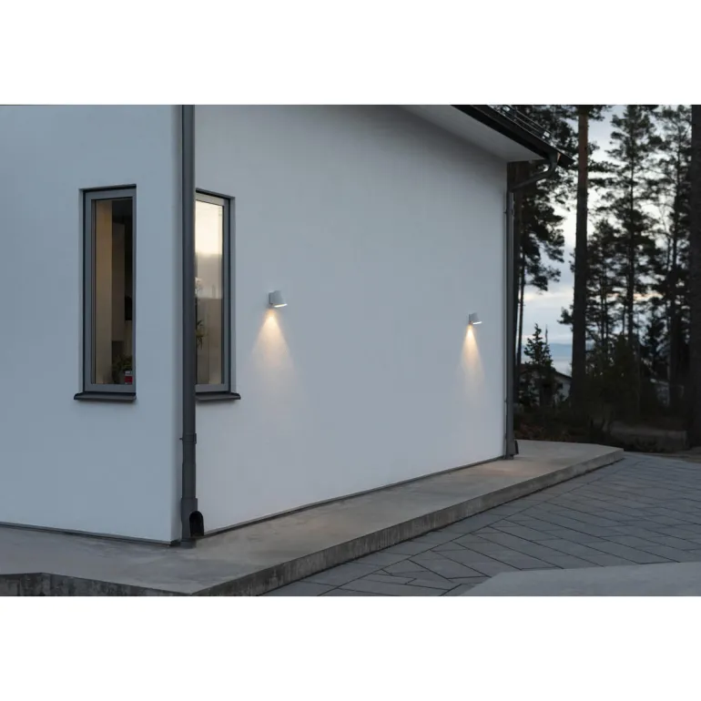 Tyylikäs kartiomainen julkisivuvalaisin. LED COB heijastinoptiikalla antaa epäsymmetrisen valokuvion, joka valaisee sekä seinää että maata.