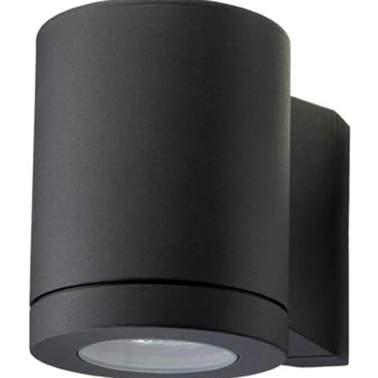 4,5 W:n lieriömäinen seinävalaisin valualumiinista, kirkas lasi, varustettu himmennettävällä GU10-kantaisella LED-valonlähteellä. Värilämpötila 2700 K, valovirta 180 lm ja hajontakulma 35°. Energialuokka A, IP65 ja IK07.