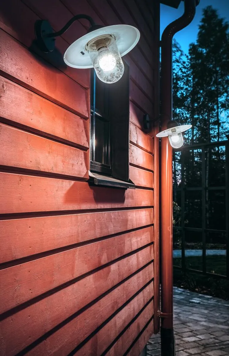 Seinävalaisin perinteisellä muotoilulla. Sopii rakennusten julkisivuvalaisuun ja piha-alueiden sisäänkäyntien ja käytävien aluevalaisuun.