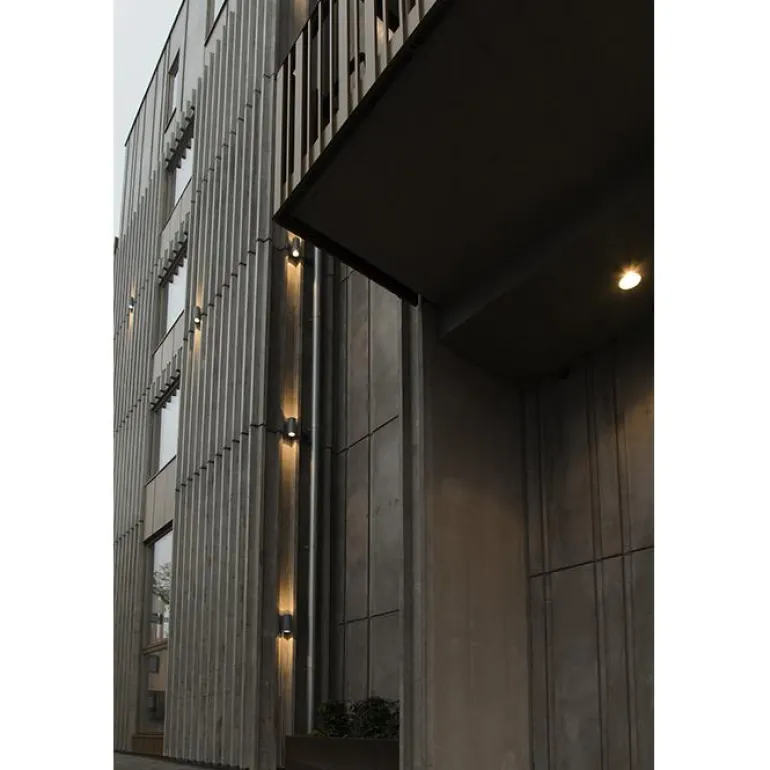 Ajattomasti muotoiltu seinävalaisin, valaisee ylös ja alas. LED COB, jonka heijastinoptiikka ja loppuun asti ajateltu muotoilu tuottavat upean valokuvion ja hyvän valomukavuuden. Erillinen taustakappale kaksoisläpiviennillä sekä pikaliittimet ketjutusmahdollisuudella helppoa asennusta varten. IP55-luokitus sekä anodisoitu ja jauhemaalattu valaisinrunko koviin sääolosuhteisiin. Mukana toimitetaan sisäänrakennettu ohjain ja korokkeet kaapelin pinta-asennusta varten.