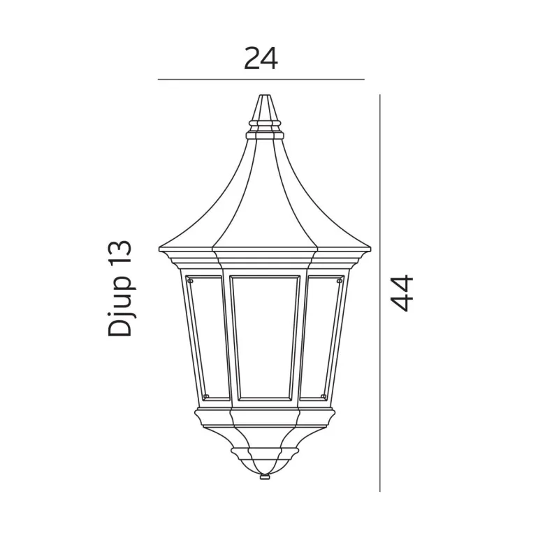 Klassinen seinävalaisin pulverimaalattua valettua alumiinia. Polykarbonaattilasi. Valaisimessa on E27-kanta, IP54-luokitus ja teho 46 W.