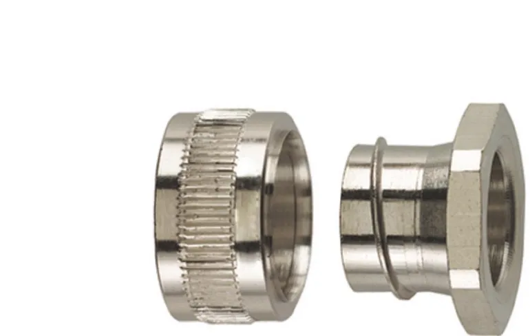 Kaksiosainen liitin, yhteinen sisäosa ja kierteetön runko. Runko sopii toisesta päästään suojaputken sisääntuloon. Toimii lukituslaitteena. Muodostaa holkille pehmeän liitoksen.