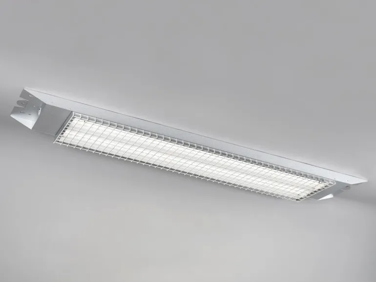 Valkoiseksi maalattu suojaritilä malliin Indline Sport IP23, kestää kovia urheilulajeja, joissa vaaditaan säleikköä valaisimelle. Työkaluton asennus, kiinnitys lukolla.