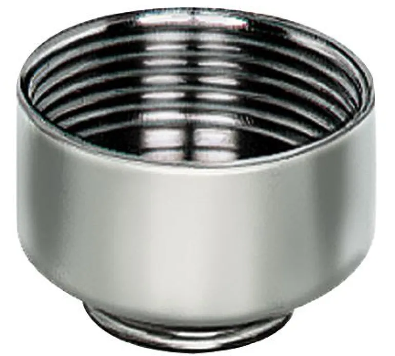 Suurennusmuhvi nikkelipinnoitettua messinkiä, jossa pieni ulkokierre ja suuri sisäkierre, DIN 46 320.