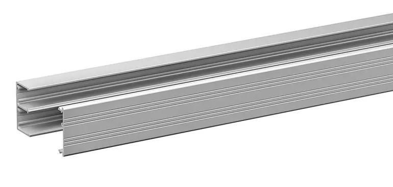 Luonnonvärinen anodisoidusta tai valkoiseksi maalatusta alumiinista valmistettu syöttökanava. Kanavat on jaettu osastoihin kiinteiden väliseinien avulla.