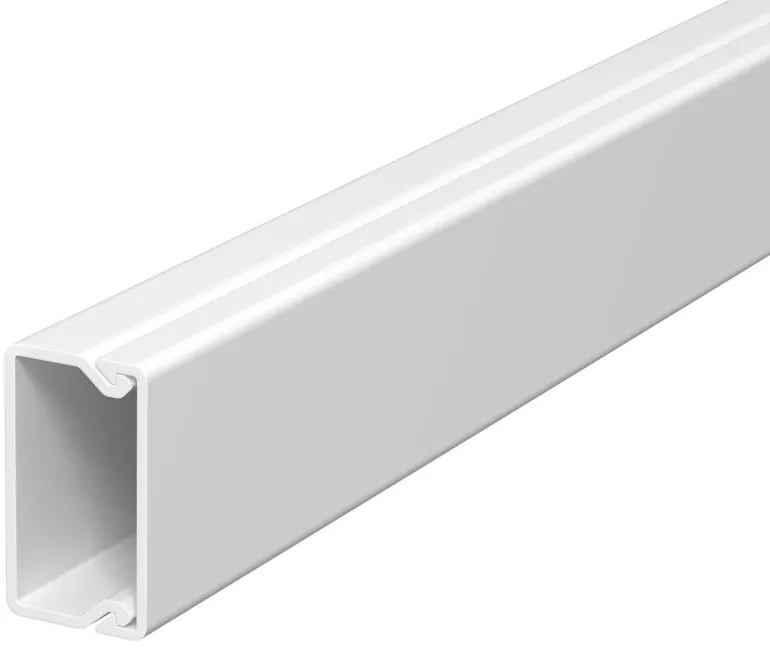 Syöttökanava, teippi helpottaa ja nopeuttaa asennusta. Kanava on valmistettu valkoisesta muovista, koko 10x20x2000 mm.