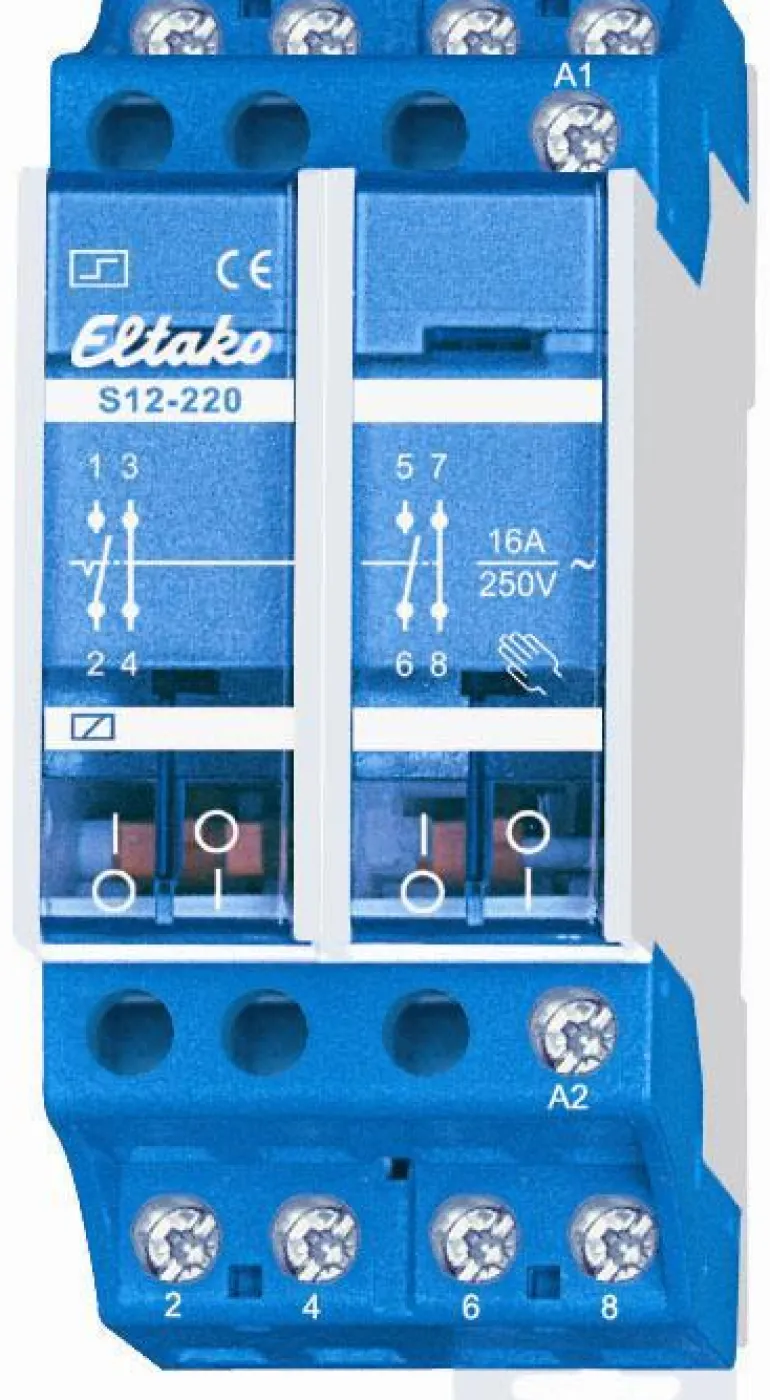 Impulssirele kiskoasennukseen normin DIN-EN 60715 TH35 mukaisesti, manuaalisella ohjauksella ja kytkimen asennon osoittimella.