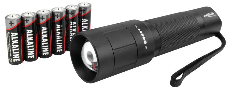 Ammattimainen 20 W ja 1500 Lumenin LED-taskulamppu, jossa on portaaton tarkennus ja äärimmäinen kirkkaus. Sisältää 6x ANSMANN Mignon AA-alkaliparistot ja hihnan.