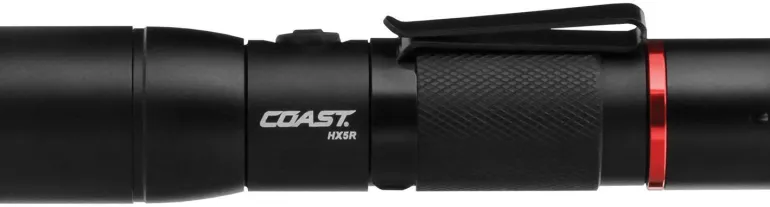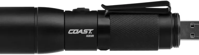 Coast HX5R on 340 lumenin ladattava taskulamppu, jossa on yhden käden tarkennus ja Pure-Beam Optic-tekniikka. Lampussaon kevyt alumiinijalka ja ladattava akku (16340, 650 mAh). HX5R-lampussa on sisäänrakennettu uros-USB-liitin, joka on sijoitettu alakannen alle ja kun lamppu ladataan USB-liitin kytketään USB-virtalähteeseen. USB-liittimessä on oikosulkusuoja, joka suojaa liitettyä laitetta. Ladattavassa akkussa on sisäänrakennettu kasetti, jotta se ei yritä ladata tavallista CR123-akkua. Pohjalevyssä on 2 LED-valoa USB-liittimen vieressä. Yksi palaa punaisena, kun laite latautuu, ja vihreä valo palaa, kun lamppu on latautunut täyteen.