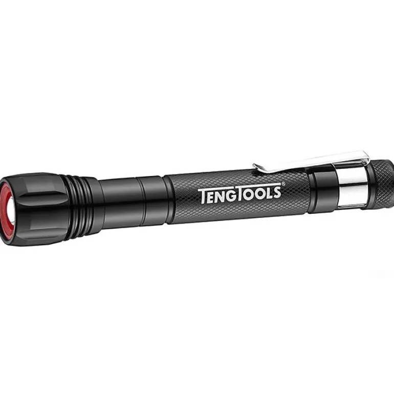 Teng Tools 581N on taskulamppu iskunkestävällä alumiinirungolla, vedenpitävyys IPX6:n mukaan. Taskulampussa on pariston merkkivalo, joka näyttää punaista, kun alle 15 % on jäljellä.