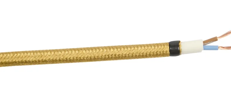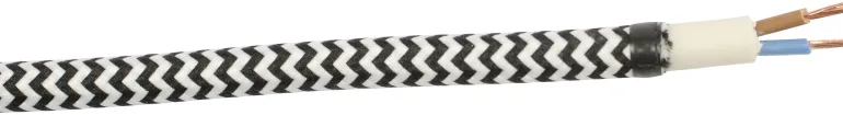 Valkoinen tekstiilikaapeli, pyöreä poikkileikkaus, asuin- ja toimistotilojen ja muiden kuivien sisätilojen siirrettäville laitteille. Soveltuu erityisesti valaisinten ripustukseen.