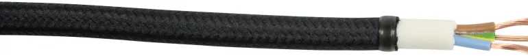 Musta tekstiilikaapeli, pyöreä poikkileikkaus, asuin- ja toimistotilojen ja muiden kuivien sisätilojen siirrettäville laitteille. Soveltuu erityisesti valaisinten ripustukseen.