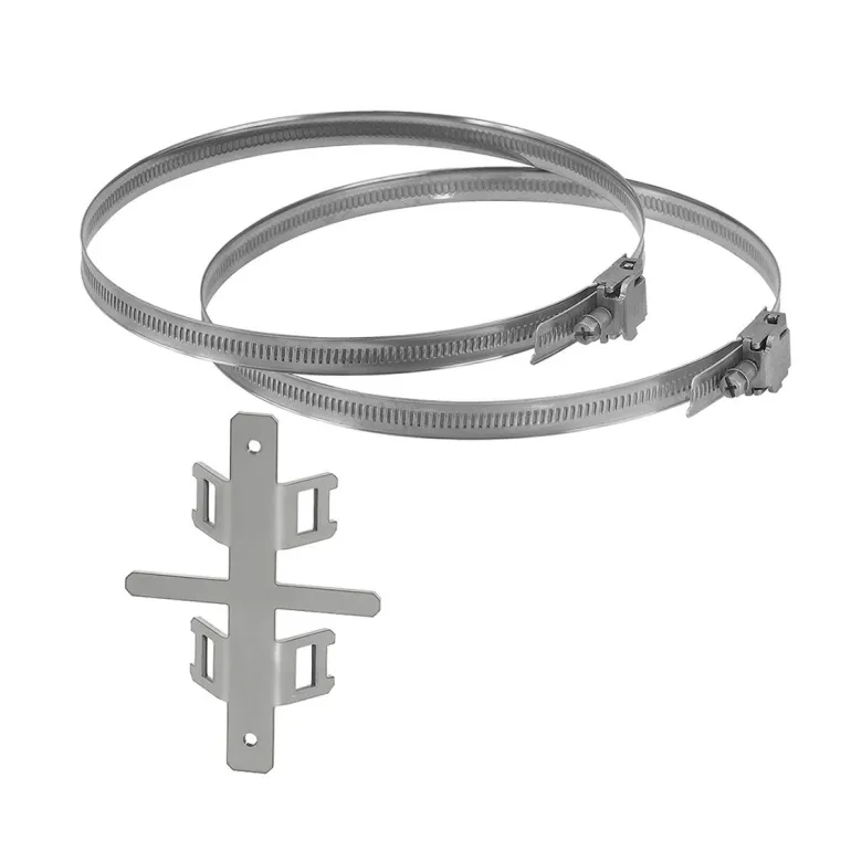 Kiinnike yleiskoteloon asentamista varten sekä kiristimet halkaisijaltaan 60–150 mm:n tolpan ympärille asentamista varten. Mukana asennusruuvit.