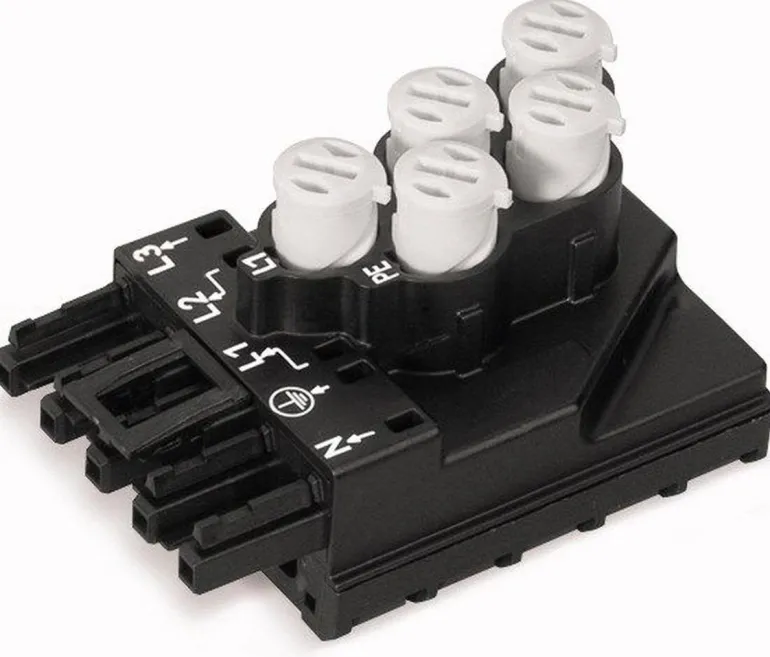 5-napainen syöttöliitin vedonpoistolla.