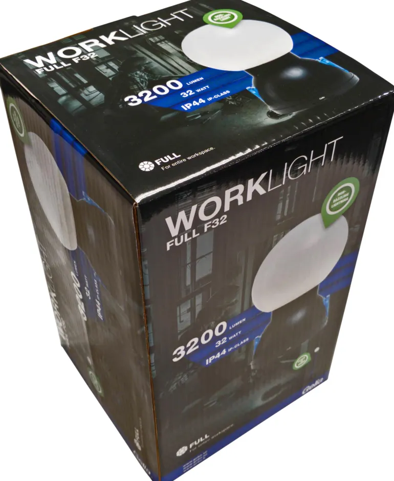 Gelian ympärisäteilevä LED-pallovalaisin FULL F32 tarjoaa häikäisemättömän yleisvalon, joka sopii täydellisesti sisätöihin, joissa tarvitaan kokonaisen huoneen valaisemista. Pallovalaisin on valmistettu muovista/komposiittimateriaalista, mikä tekee siitä erittäin iskunkestävän. Valaisin on varustettu integroidulla ripustuskoukulla. Työvalaisin voidaan kiinnittää myös jalustaan tai sijoittaa lattialle. Valaisimessa on 2 kpl 230 V:n pistorasioita, joissa on itsesulkeutuva kansi ja jotka helpottavat virransyöttöä työskentelyn aikana. Mukana 5 m pitkä kaapeli H07RN-F 3G1,5. Käyttöikä 50 000 tuntia. Suojausluokka IP44.