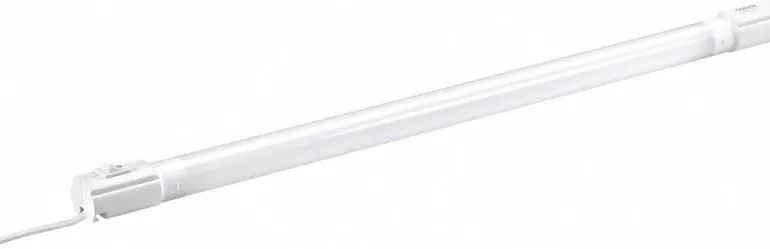 Ohut työtasovalaisin integroidulla kytkimellä. Mukana on kiinnikkeet valaisimen seinä- tai kattoasennusta varten sekä kiinnike ja koukku siirrettävälle valaisimelle, jonka voi ripustaa sinne, missä valaisinta tarvitaan.