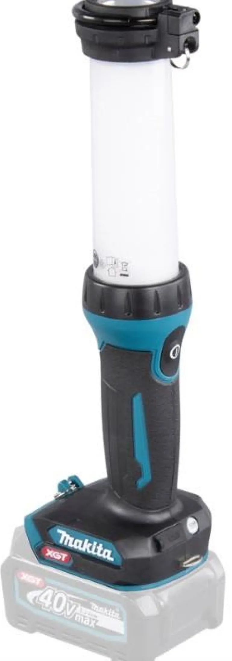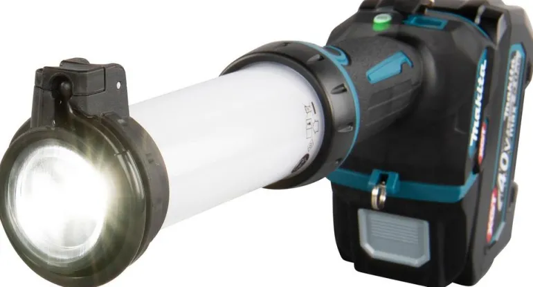 Makita ML002G on työmaavalaisin 40V XGT -akuille kolmella eri tehoasetuksella (710 / 340 / 130 lm) ja valotilalla (360° valaiseva, 180° valaiseva ja taskulamppu/kohdevalaisin). Runko ilman akkua ja laturia.