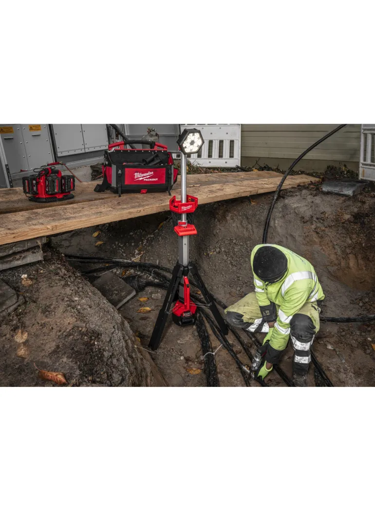 Milwaukee 4933492903 M18™ jalallinen LED-työvalaisin TRUEVIEW™-teräväpiirtotekniikalla. 12 suorituskykyistä LED-valoa tuottavat 2800 luumenin valaisutehon (kolme valotilaa 2800/1300/860 lm). Iskunkestävä ja säädettävä valaisupää, jota voidaan kääntää pystysuunnassa 230° ja vaakasuunnassa 240°. Maston korkeus on säädettävissä 1,10 – 2,20 metrin välillä. Maks. käyttöaika M18 REDLITHIUM 5,0 Ah -akulla: 4,5/8,5/13,5 h (matala/keskitaso/korkea). IP54-luokitus. Paino akun kanssa 7,6 kg (5,0 Ah). Mukana 2 x 5,0 Ah REDLITHIUM-akkua, 100 min. laturi ja työkalulaukku.