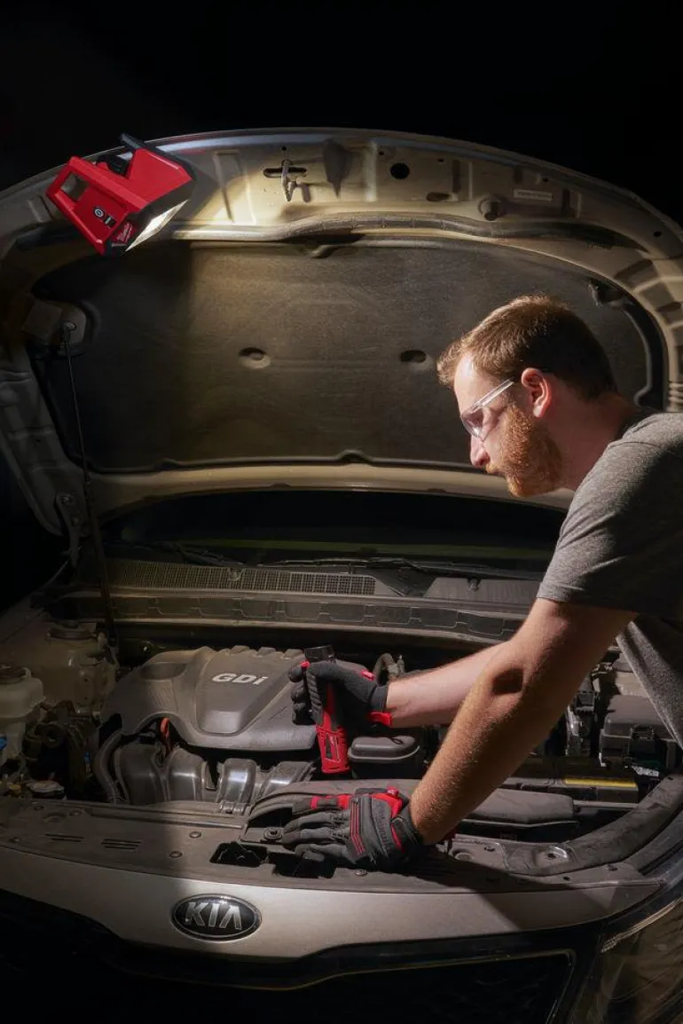 Työvalo on erittäin lujatekoinen. Polykarbonaatista valmistettu linssiosa kestää putoamista jopa 2,7 metrin korkeudelta. Toimii Milwaukeen 12 V:n Li-ion-akuilla.