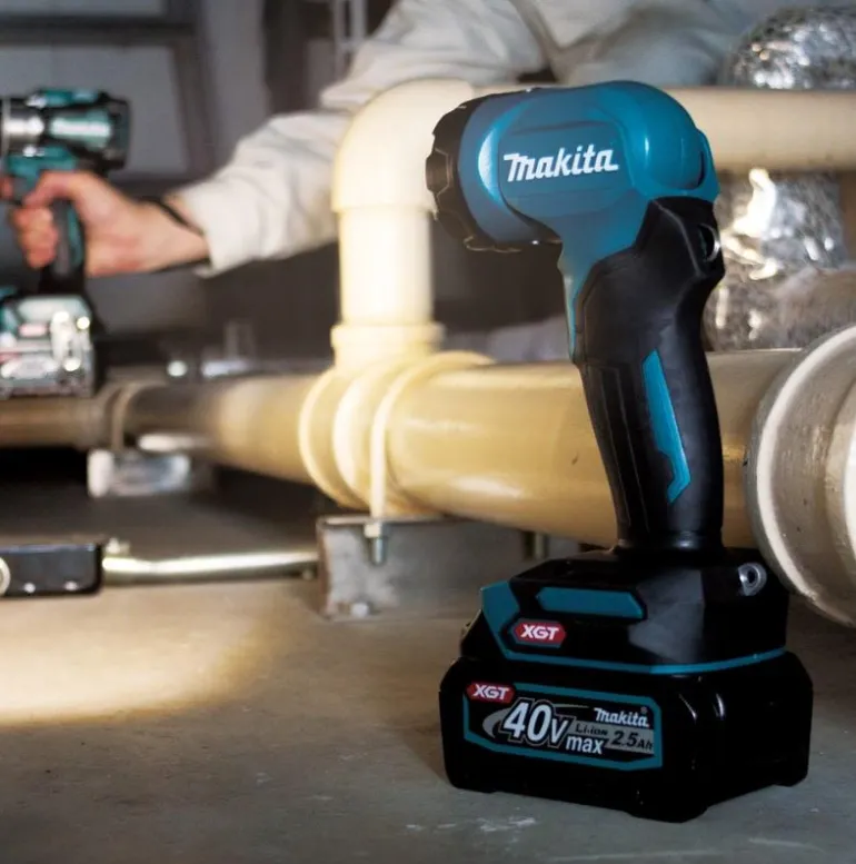 Makita ML001G on kohdevalaisin 40V XGT® -akuille. Valaisimen pää säädettävissä 12 eri asentoon 0-170°.