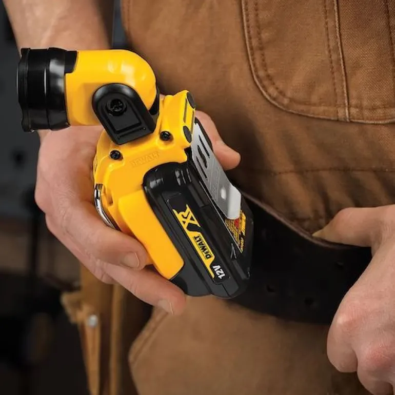 DEWALT DCL510N on 130 lm työvalaisin, jonka voi kääntää eri asentoihin, vyökoukku ja magneettikiinnitys. Toimii DEWALTin Li-ion 10,8/12V:n akuilla.
