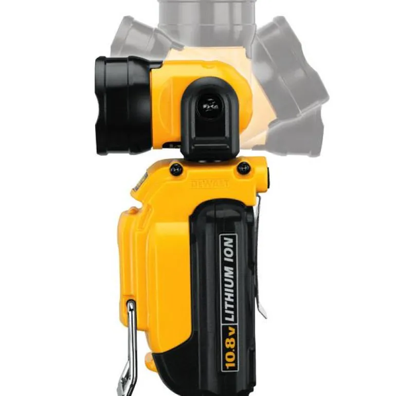 Työvalaisin, jonka voi kääntää eri asentoihin, vyökoukku ja magneettikiinnitys. Toimii DEWALTin Li-ion 10,8/12V:n akuilla.