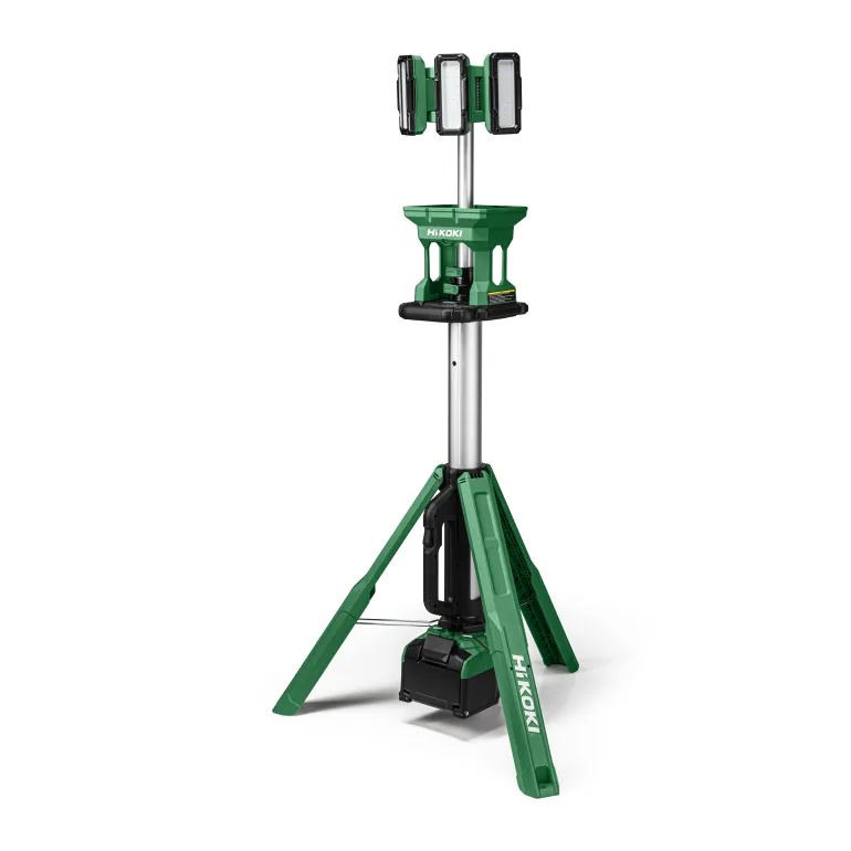 HiKOKI UB18DG on kokoontaitettava jalustallinen työvalaisin, jota voidaan käyttää 18 V-akulla tai verkkovirralla. Työvalaisin on kannettava ja sen korkeus on säädettävissä välillä 123 – 215 cm. Kolmella LED-valoyksiköllä ja 4-portainen valovirran säätö joustavuutta varten. Käyttöaika vaihtelee akun kapasiteetin ja valotilan mukaan (jopa 17 tunnin käyttöaika 8 Ah:n akulla). Jalusta on säädettävissä 360° ja valaisimella on IP55-luokitus. Voidaan käyttää HiKOKIn 18V ja Multi Volt-akkujen kanssa.
