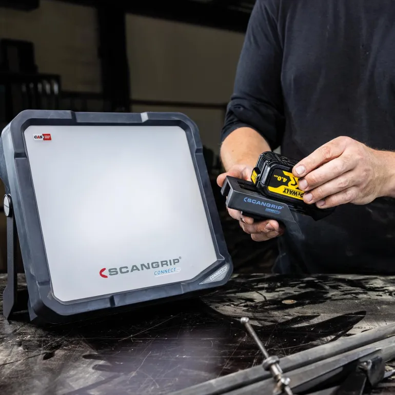 VEGA 4 CONNECT on tehokas työvalaisin (työvalo) 4 000 luumenin valovirralla. LED-valonlähde valaisee laajasti miellyttävällä ja häikäisemättömällä valolla. Varustettu kahdella valotilalla: 50-prosenttinen ja 100-prosenttinen teho. Valaisin on yhteensopiva kaikkien suurempien valmistajien 18V-akkujen kanssa Scangripin CONNECTOR-adapterin avulla (ei sisälly toimitukseen). Lisäksi lisätarvikkeena löytyvä POWER SUPPLY CONNECT mahdollistaa valaisimen kytkemisen suoraan verkkovirtaan. Valmistettu iskunkestävästä muovimateriaalista, joka kestää hyvin käyttöä ja on suojattu pölyltä ja roiskuvalta vedeltä (IP54-luokittelulla). Ei tuota LED-valonlähteenä lämpöä, joten ei aiheuta paloriskiä tämän takia.