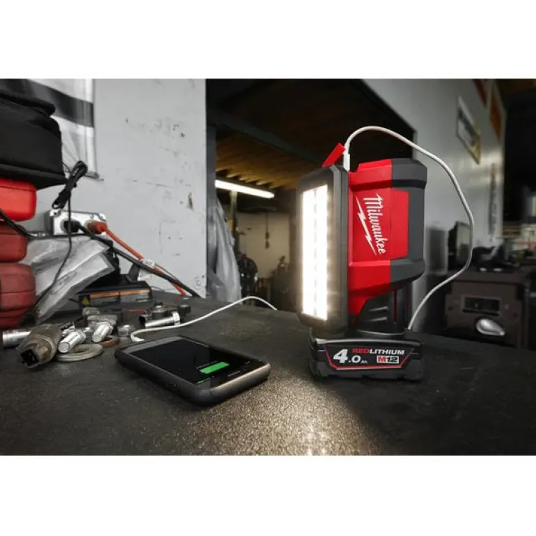 Tilavalaisin tuottaa 700 lm kirkkauden kompaktissa koossa. Valaisimella on jopa 24 tunnin toiminta-aika M12 REDLITHIUM 4,0 Ah -akulla. Varustettu 2,1 A USB-liitännällä mobiililaitteiden lataamiseen.