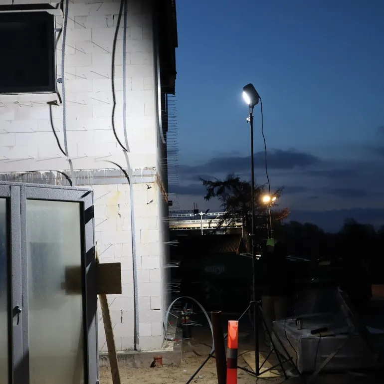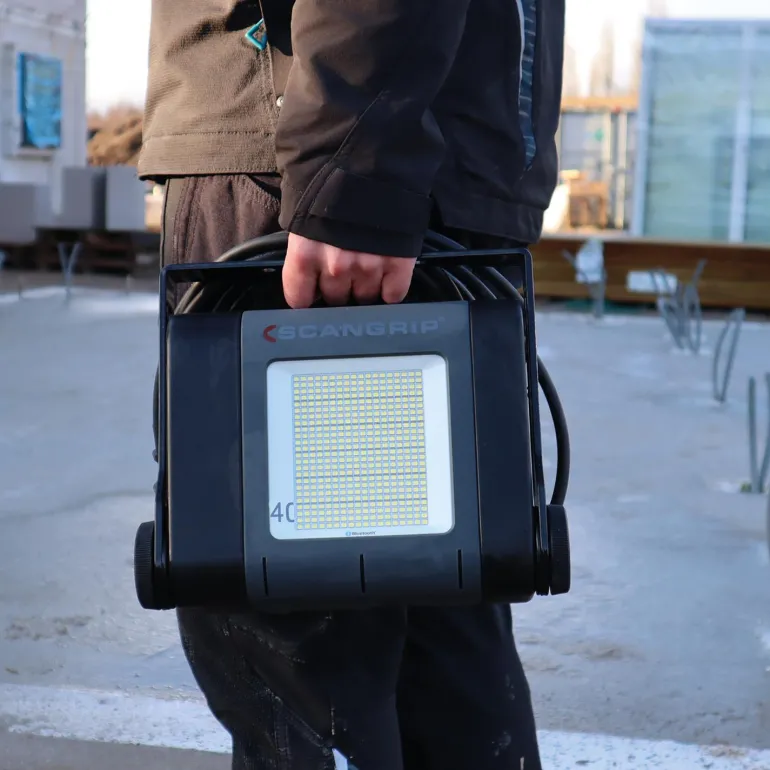 Kompakti ja kevyt työmaavalaisin (valonheitin) 40 000 luumenin valovirralla, joka on tarkoitettu suurempien pinta-alojen valaisuun. Valaisin on varustettu 4-portaisella himmenystoiminnolla ja Bluetooth-ohjauksella mobiilisovelluksen kautta. Valaisimessa on tukeva kantokahva helppoa käsittelyä ajatellen ja toimitukseen sisältyy adapteri jalustakiinnitystä varten sekä kuljetuslaukku.