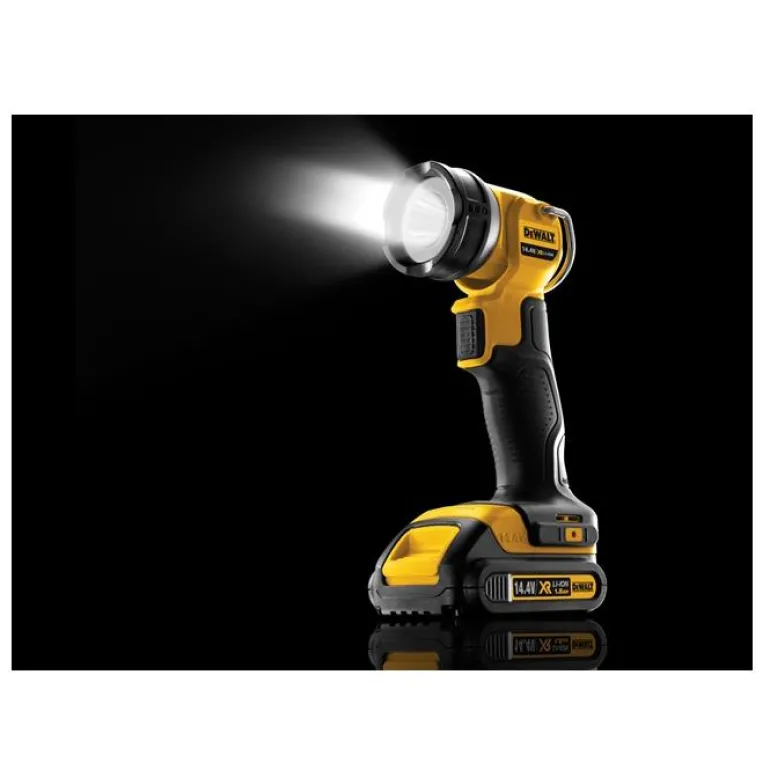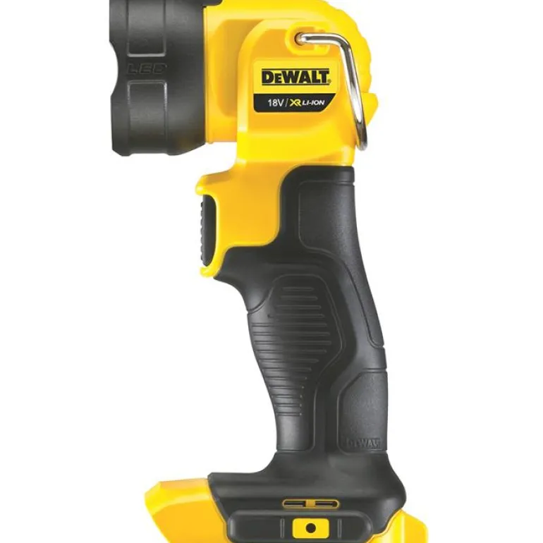 Työvalaisin, jonka valaisinpäätä voidaan pyörittää eri asentoihin. Valaisimessa on vyöpidike. Kumipinnoitettu kahva mahdollistaa varmemman, ergonomisen otteen. Toimii DEWALTin Li-ion 18 V:n akuilla.