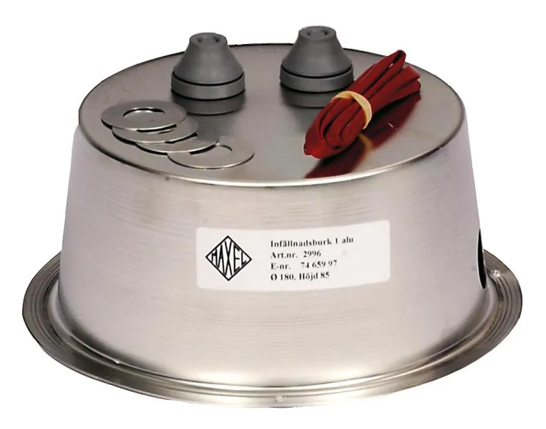 Upotuspurkki, jonka upotusleveys on 180 mm ja upotussyvyys 85 mm. Toimitetaan asennetulla kumisulkimella ja lämmönkestävällä eristysletkulla suojaamaan kotelon valaisinkaapelia. Tilaa riittää sekä valonlähteen että muuntajan lämmönkehityksen käsittelyyn.
