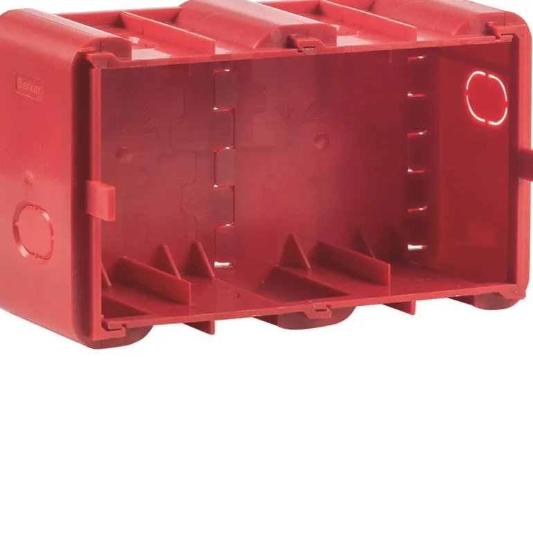 Erikoisrasia Berker R.8 -sarjalle, kiinteään seinään upotukseen. Täydennetään rasialla väliseinään upotusta varten