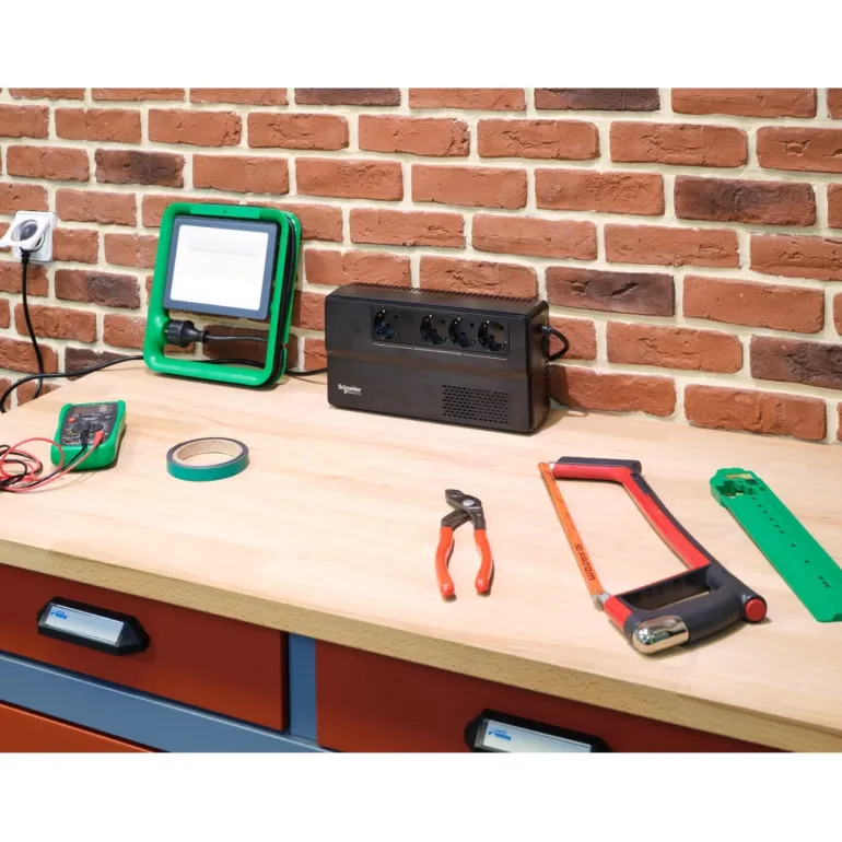 Schneider Electric BVS1000I-GR Easy UPS on kompakti UPS-laite, joka suojaa laitteitasi jännitevaihteluilta ja antaa niille virtaa epävakaissakin sähköolosuhteissa. BVS1000I-GR Easy UPS on kompaktin kokoinen ja se voidaan halutessa kiinnittää helposti seinään tai pöytään. Tuloliitäntä Schuko ja 4 x CEE 7/3 Schuko akkuvarmennettua lähtöliitäntää (ylijännitesuojalla).