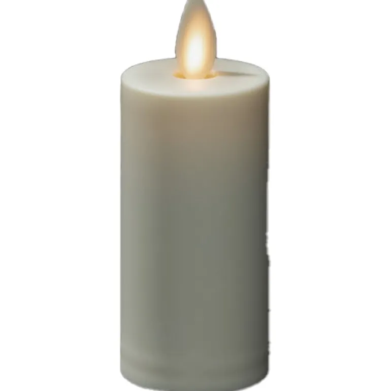 Kermanvalkoinen vahakynttilä. Korkeus 14 cm ja 5 h ajastintoiminnolla. Kynttilä saa virtansa kahdesta D-paristosta.