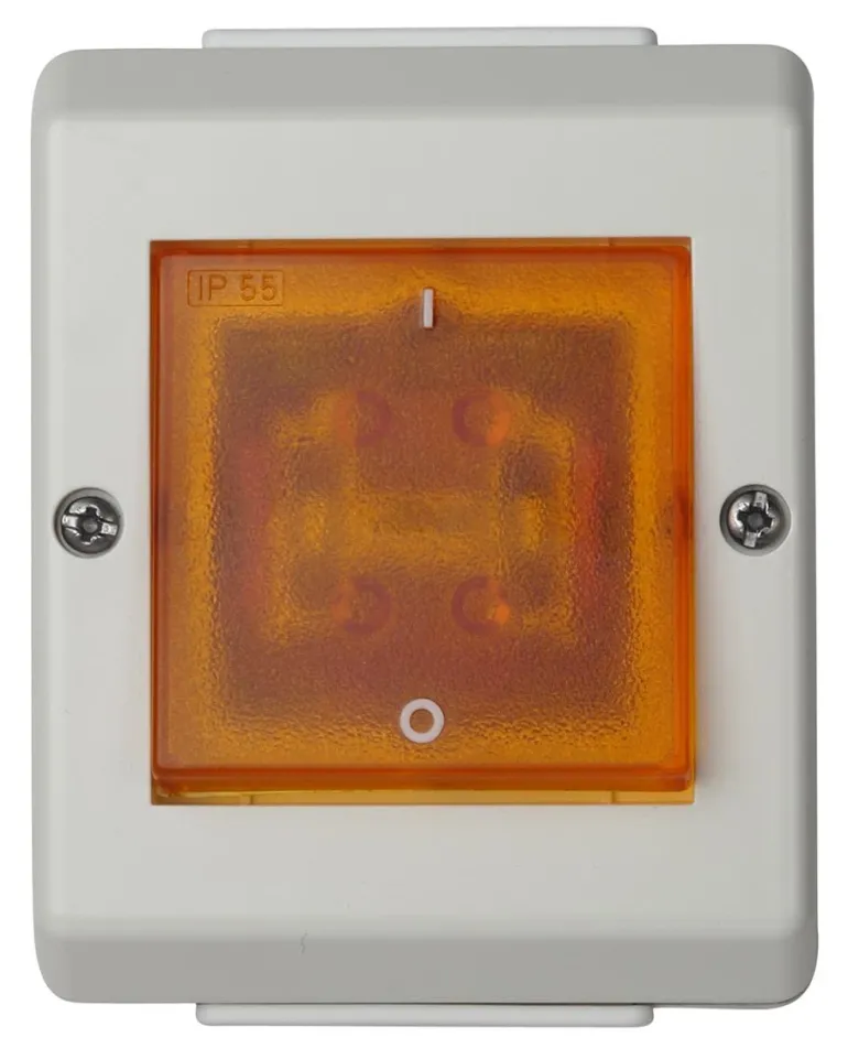 2-napainen kytkin valolla, pinta-asennukseen. Kytkin on valmistettu halogeenittomasta termoplastista.