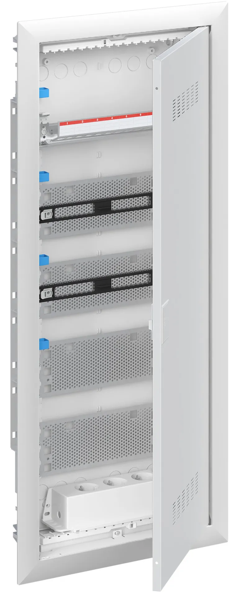 Vakiokeskuskotelo uppoasennukseen, sarjaan ABB UK600, ovikehyksellä ja ovella, kotelointiluokka II (kaksoiseristetty) ja IP30.