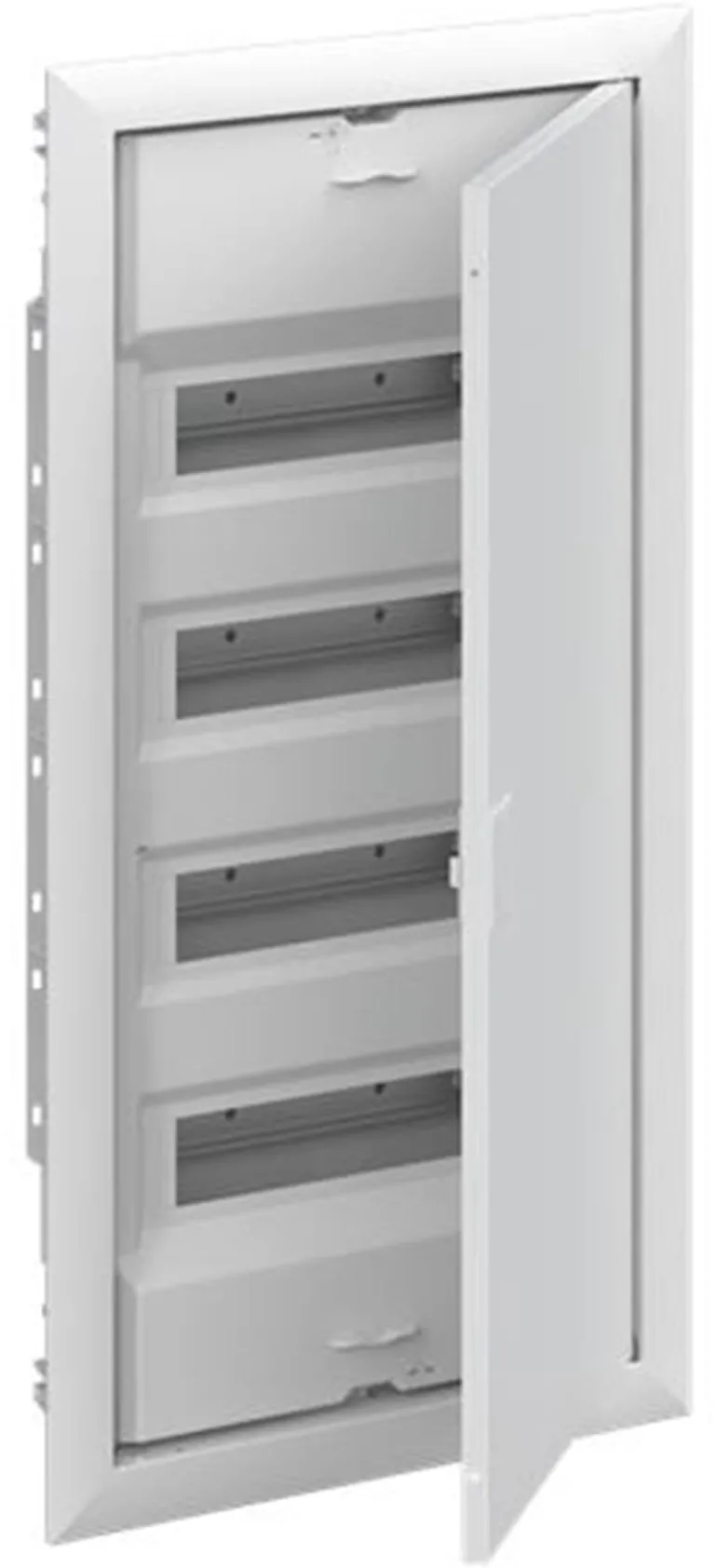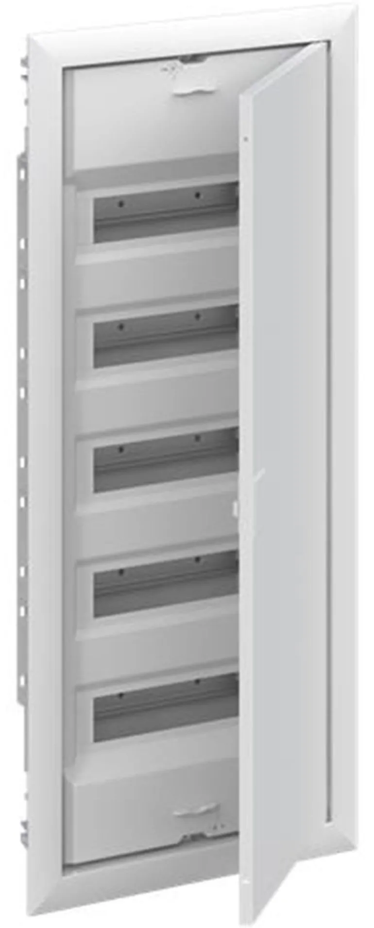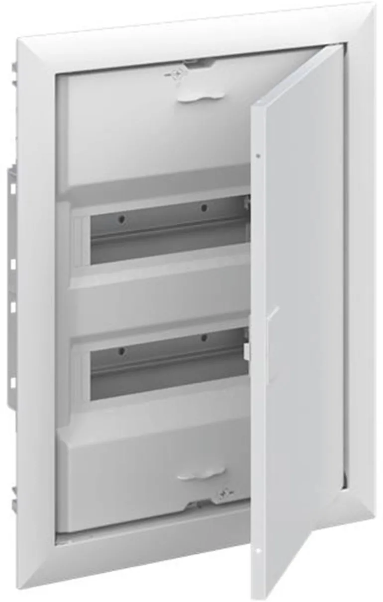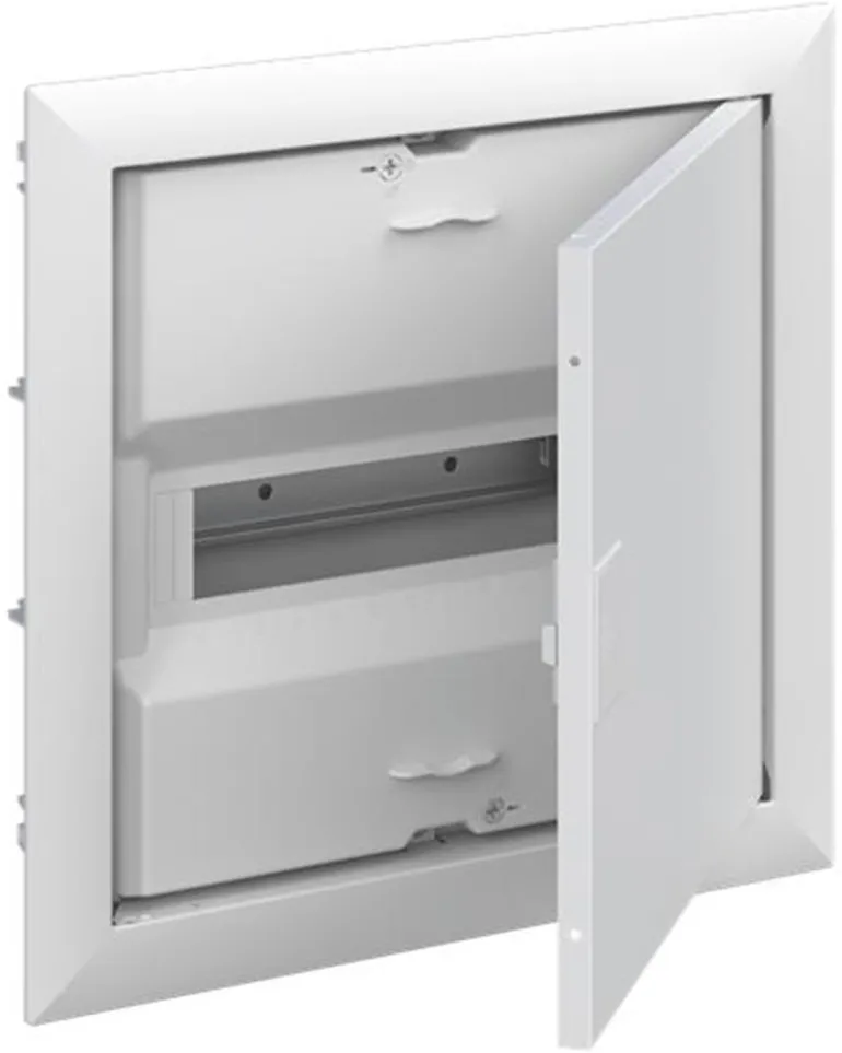 Vakiokeskuskotelo uppoasennukseen, sarja UK600, ovikehyksellä ja ovella, kotelointiluokka II (kaksoiseristetty) ja IP30. Sovellettavat standardit: EN 60670-24, IK-koodi 07. Nimelliskäyttöjännite 400 V AC 50/60 Hz, nimellisvirta 63 A, hehkulangan resistanssi 850 °C, jauhemaalattu, RAL 9016, kestomuovinen kotelo, jossa kehys ja ilmastoitu ovi, teräslevyovi, TIP-suljin, oven avauskulma 120°, oven sarana oikealla tai vasemmalla, N/PE ja integroitu kaapelikiinnike.
