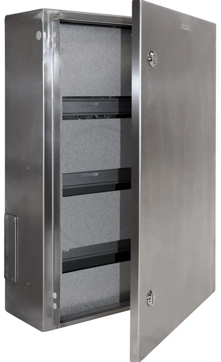 Ruostumattomasta teräksestä valmistetut kotelot, joita käytetään maataloudessa, pesuloissa, ulkona ja muissa vaativissa kohteissa. Kotelot ovat saatavilla vakiokeskuksina sekä varoketaulun ja vakiokeskusten yhdistelmänä.