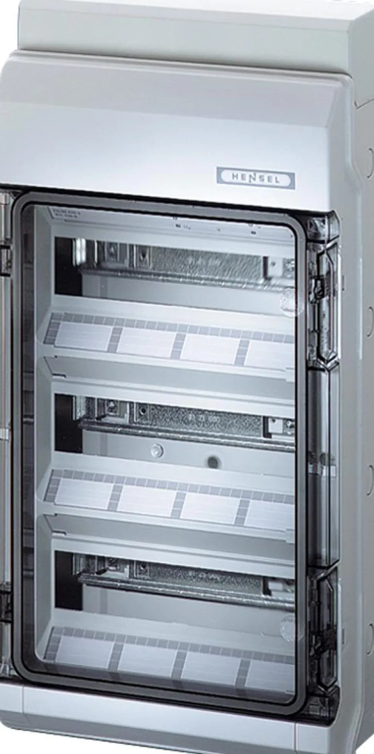 Vakiokotelo harmaata polystyreeniä. Luokitus IP54. Koteloissa on kalvoläpiviennit. Läpinäkyvä kansi polykarbonaattia. Kannen voi sinetöidä tai lukita erikseen tilattavilla lukoilla.
