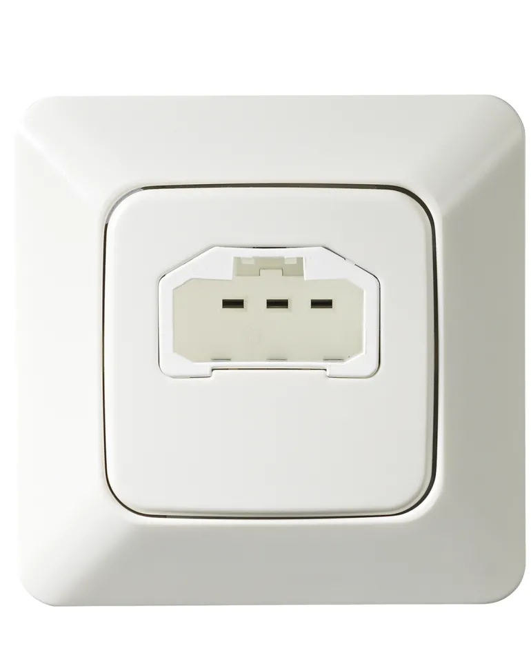 DCL-valaisinpistorasia, seinä, asennus laitelaatikkoon, pikaliitäntä, max 2,5 mm²:n kaapeli.