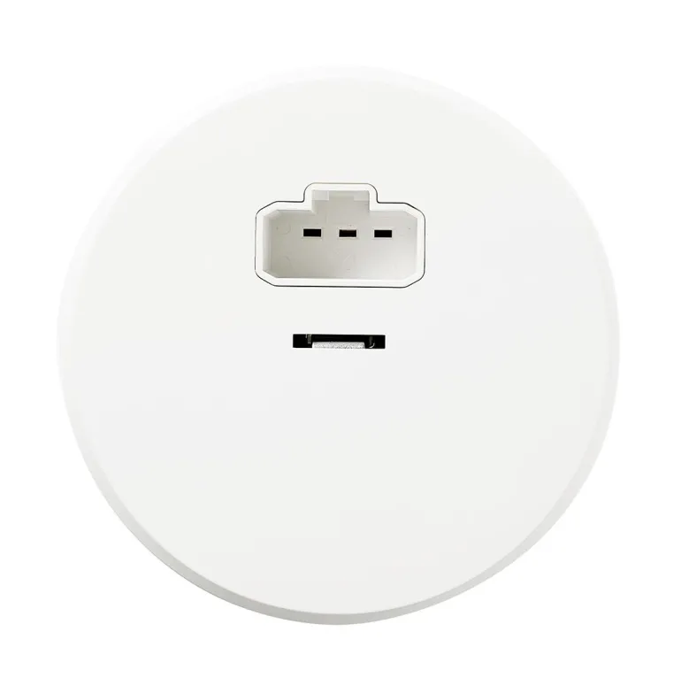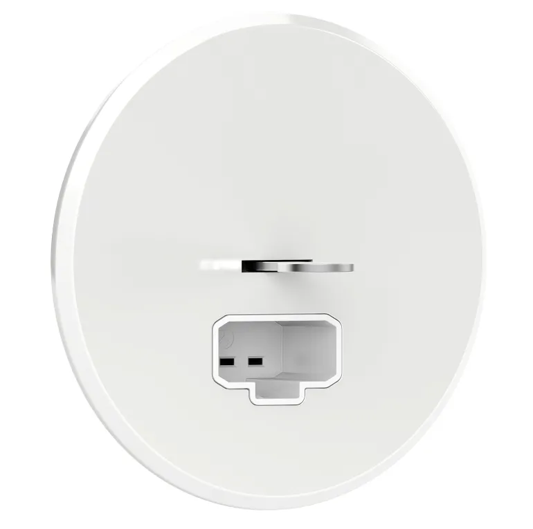 Valaisimen liitin Puhtaan valkoinen DCL kattoasennukseen, RS16-sarja. DCL tarkoittaa valaisimien kytkentälaitetta, Device for Connection of Luminaires, ja siinä on pistotulppa ja pistorasiajärjestelmä kiinteän valaistuslaitteen kytkemiseksi.