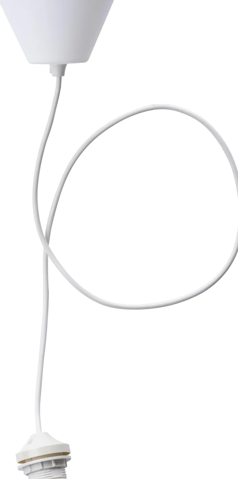 Pyöreä johdin. Valaisinkaluste E27, maks. 60 W. Sisältää kattokuvun, ripustussangan ja liittimen.
