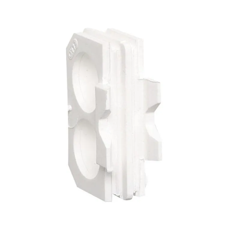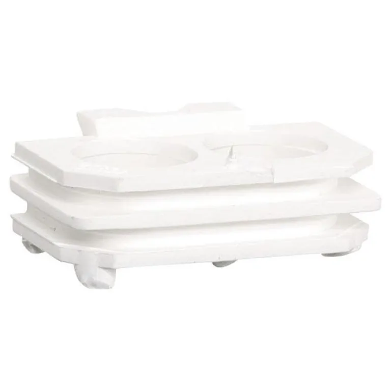 Välikappale koteloitujen, pinta-asennettujen pistorasioiden ja kytkimien kokoamiseen. Siinä on kaksi reikää ja se on tehty valkoisesta termoplastista.