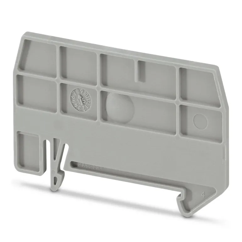 Phoenix Contact ATP-ST 4 -välilevy, jonka pituus on 61 mm, leveys 2 mm ja korkeus 42 mm. Harmaa.