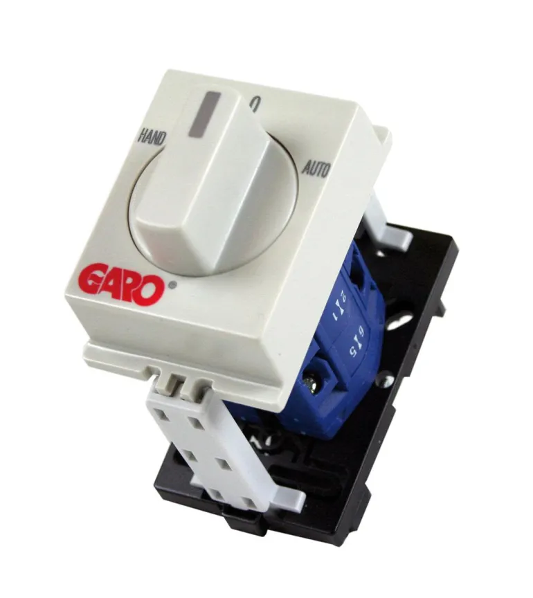 Hand-0-Auto-mallin kytkin on helppo asentaa vakiokeskukseen. Se soveltuu käytettäväksi, kun ohjauspiiri ohitetaan manuaalisesti, esim.
