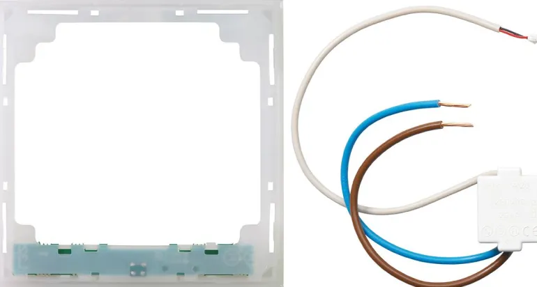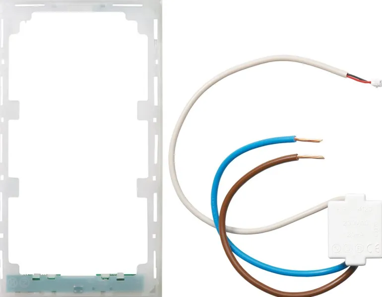 Valokehykset, 1-, 1,5- ja 2-osaiset, hillittyä valkoista valoa kehyksen takaa. Valokehys voi toimia uloskäyntiopasteena tai koriste-elementtinä. 2 LED-valoa jokaisessa kehyksessä takaa tasaisen jakautumisen, erittäin pitkän käyttöiän ja minimaalisen lämmöntuotannon. Valo leviää kehyksen ympärille optisen valonohjaimen kautta. Kirkkautta voidaan säätää portaattomasti niin, että se voidaan mukauttaa huoneen seinän väriin ja tyyliin. Asennettaessa irrota olemassa oleva undercut-kehys ELKO Plus -materiaalista ja kiinnitä valokehys. Valokehyksen mukana toimitetaan minimuuntaja E52 021 21, joka sijaitsee seinärasiassa. Kaapeli ja liittimet kierretään asennuslevyn läpi ja kytketään valokehykseen. HUOMAUTUS: ei sovi Option- tai korotuskehyksiin
