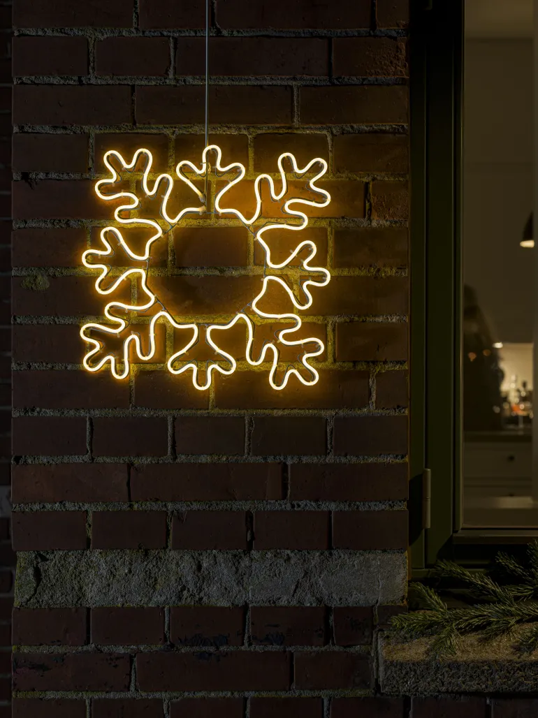 Konstsmide 3078-102 on valokoriste LED-valoletkulla (lumihiutale). Metallia, 384 lämpimän valkoista LEDiä. 31V/IP44.